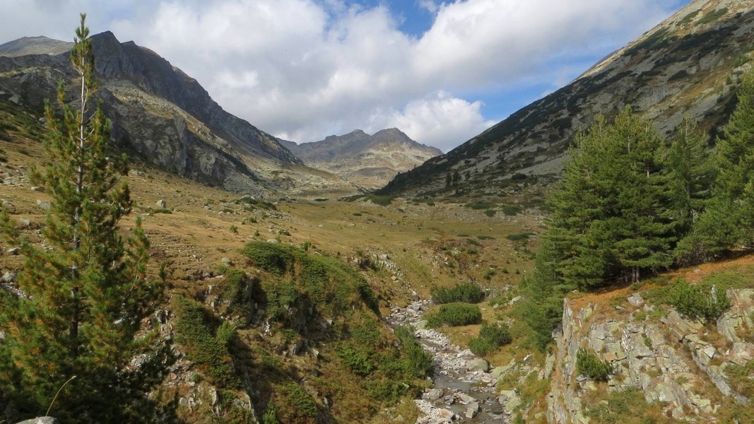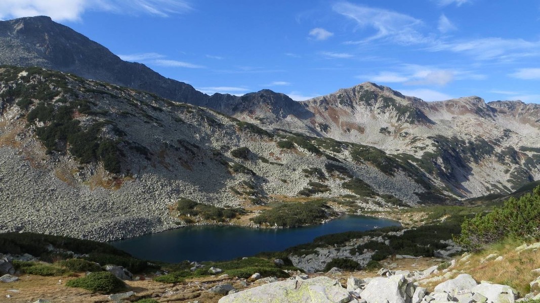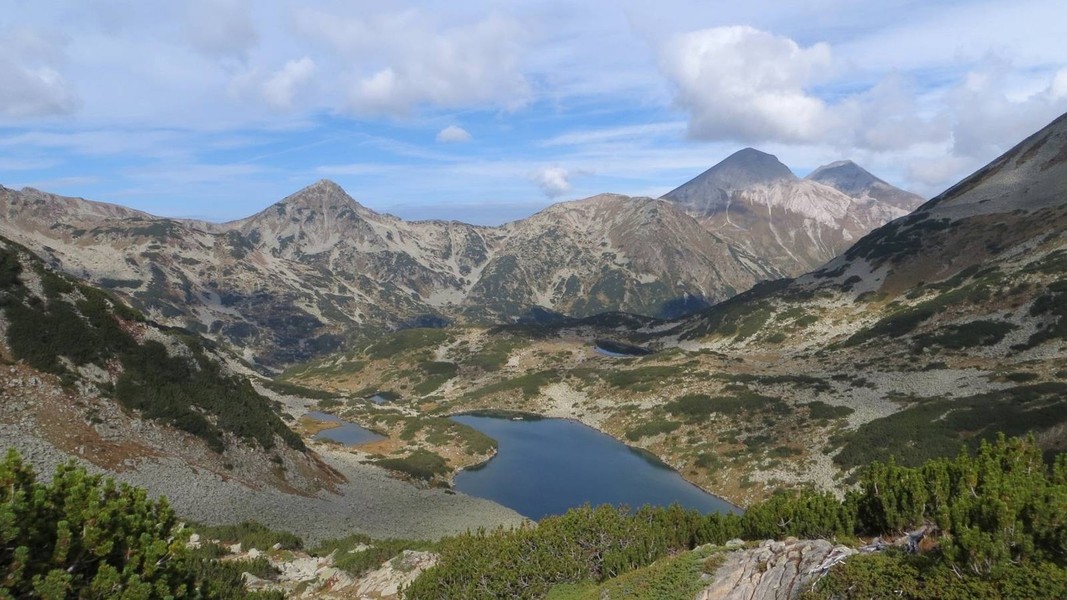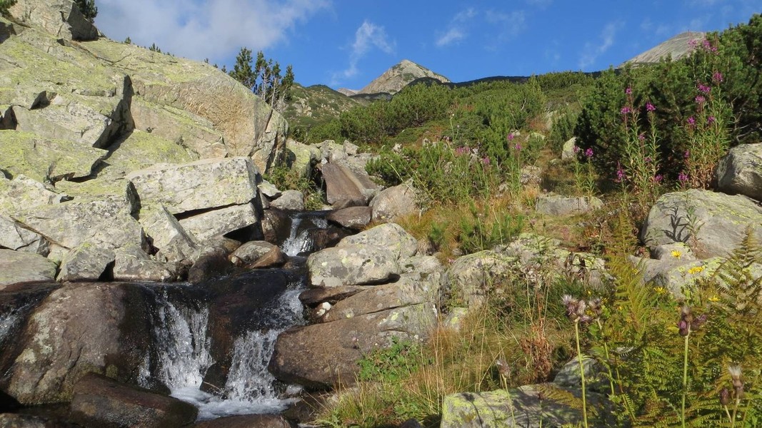 Das südlich an das Rila-Gebige anschließende Pirin-Massiv ist flächenmäßig deutlich kleiner, weist aber ein wesentlich schrofferes Relief auf. Der Marmor-Gipfel des 2914 m hohen Vichren ist nur um wenige Meter niedriger als die Musala. Eine Besonderheit des Pirin sind die zahlreichen reizvollen Karseen. Von Norden erfolgt der Zugang in der Regel über das Städtchen Bansko. Der größte Wintersportort Bulgariens hat sich im Zentrum mit der alten Bausubstanz viel Atmosphäre erhalten und bietet in der ruhigeren Sommersaison mit vielen typischen Gasthäusern einen angenehmen Aufenthalt. Im Süden fällt das Pirin-Gebirge allmählich in die Täler an der Grenze zu Griechenland und Mazedonien an. Hier werden die dichten Nadel- und Laubwälder von einer mediterranen Vegetation abgelöst. Mit dem malerischen Roshen-Kloster und dem Weinort Melnik inmitten bizarrer Felspyramiden gibt es hier attraktive Ziele für das Ende einer Durchquerung des Pirin.