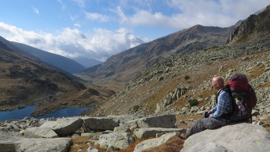 Jens-Uwe: vom Banderiski Ezera über den Pirin-Hauptkamm zur Vinarska Porta (roter Weg) und kurzer Abstieg zu den Prevalski Ezera (grüner Weg)