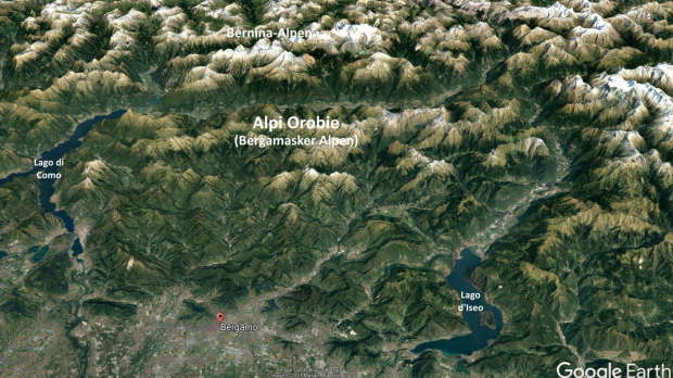 Die Bergamasker Alpen (auf italienisch zumeist als Alpi Orobie bezeichnet) sind eine Gebirgsgruppe südlich des Alpenhauptkamms in der Region Lombardei. Sie erstrecken sich grob zwischen dem Lago di Como im Westen und dem Lago d‘Iseo im Osten. Nach Norden werden sie vom tiefen Talbecken des Veltlin begrenzt. Nach Süden laufen die Berge bei Bergamo allmählich in die weite Poebene aus. Die tief eingeschnittenen Täler des Valle Brembana und des Valle Seriana ermöglichen von Süden den Zugang zur schroffen Hauptkette, die Höhen von knapp über 3000 m erreicht. Höchster Gipfel ist der Pizzo di Coca mit 3052 m. Während der Hauptkamm überwiegend aus kristallinen Gesteinen besteht, sind nach Süden einige eindrucksvolle Kalkmassive (Presolana mit 2521 m, Pizzo Arera mit 2512 und die oft als eigenständiges Massiv betrachtete Grigne am Comer See mit 2410 m) vorgelagert. In einem Großteil der Region ist die Sektion Bergamo des Italienischen Alpenvereins CAI für die Unterhaltung des Wegenetzes zuständig und unterhält zahlreiche gut geführte Berghütten. Aufgrund der teilweise sehr steilen Berghänge sind zahlreiche Wegabschnitte im Bereich des Hauptkammes anspruchsvoll und sollten nur von erfahrenen Bergwanderern in Angriff genommen werden. Die meisten hohen Gipfel sind nicht über ausgebaute Wege sondern nur auf alpinen Routen zu erreichen.
