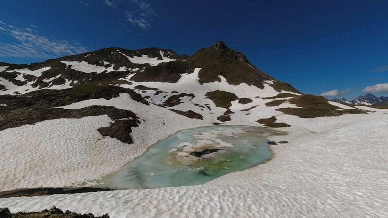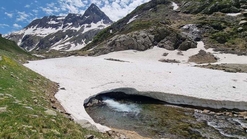 Bis in den Juli ist in den Hochlagen mit (steilen) Schneefeldern zu rechnen. Zwei Etappen des Annello Orobie (Rif. Coca – Rif. Brunone – Rif. Calvi) haben wir daher Ende Juni umgangen.