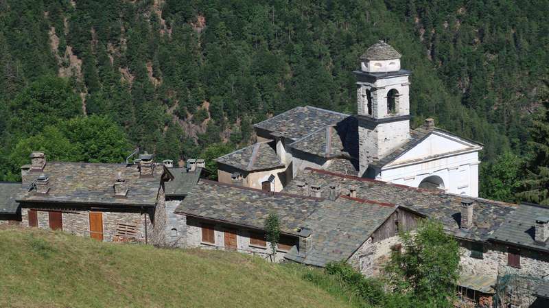 Von der Hütte steigen wir auf Fahrwegen und schönen Waldwegen (mehrmals kann man zwischen verschiedenen Routen wählen) zu den ersten Almen im Valle del Livrio und zum kleinen Weiler mit der historischen Kirche San Salvatore (1312 m) hinab. Von hier suchen wir uns mit Hilfe der Karte auf unserem Smartphone einen möglichst direkten Weg, zumeist auf ruhigen Waldwegen, in die Ortschaft Albosaggia Vecchia. Weiter geht es durch zunehmend vom Menschen geprägte Landschaft zum Flusslauf des Fiume Adda und an seinem Ufer nach Sondrio (360 m). Durch den Gürtel der Gewerbegebiete erreichen wir schnell den Bahnhof mit seinen guten Regionalzug-Verbindungen nach Lecco am Comer See und weiter nach Mailand oder Bergamo.