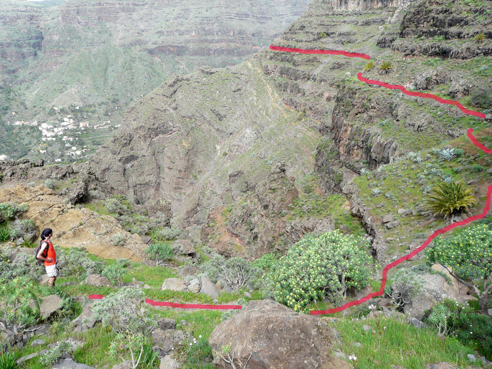 6. Mit dem Bus nach Arure. Von Arure zunachst äuf Fahrweg, dann auf Pfad zum spektakulären Sepentinenweg hinab nach La Calera im Valle Gran Rey.