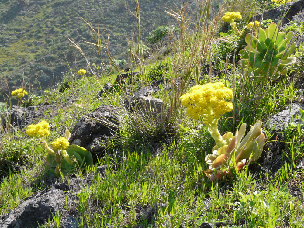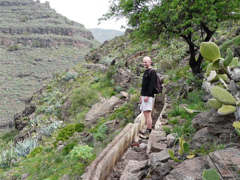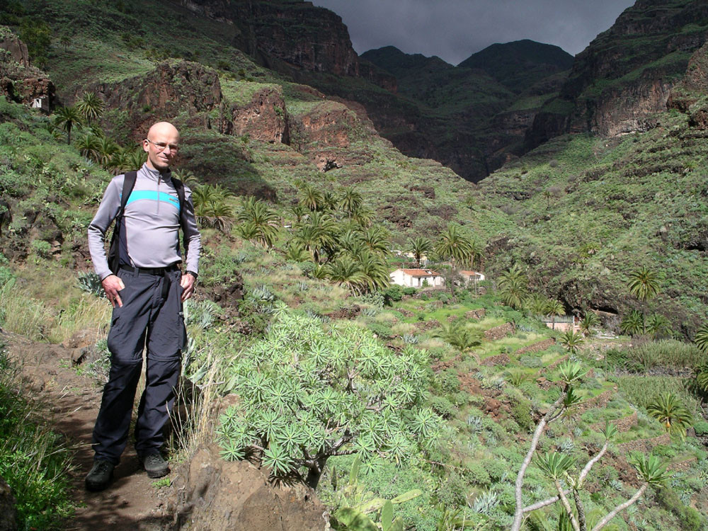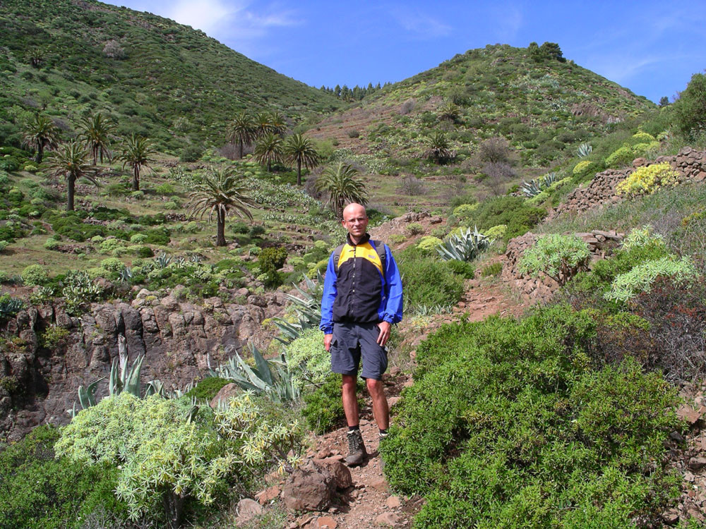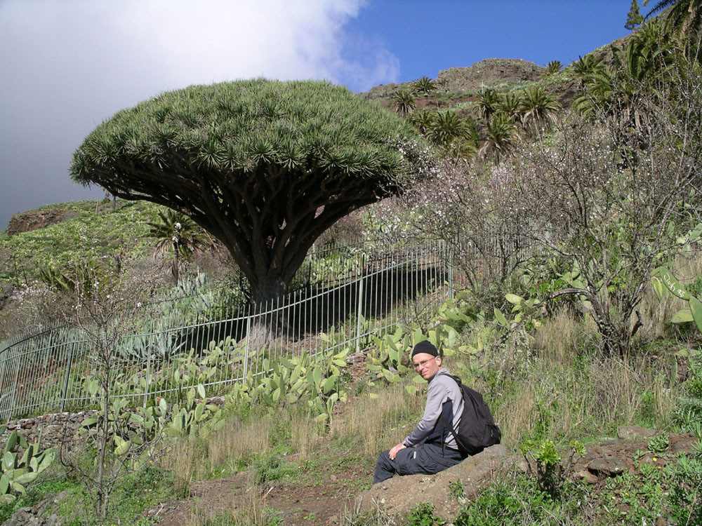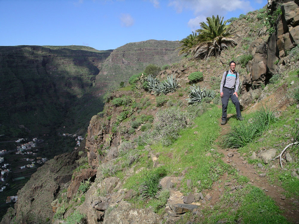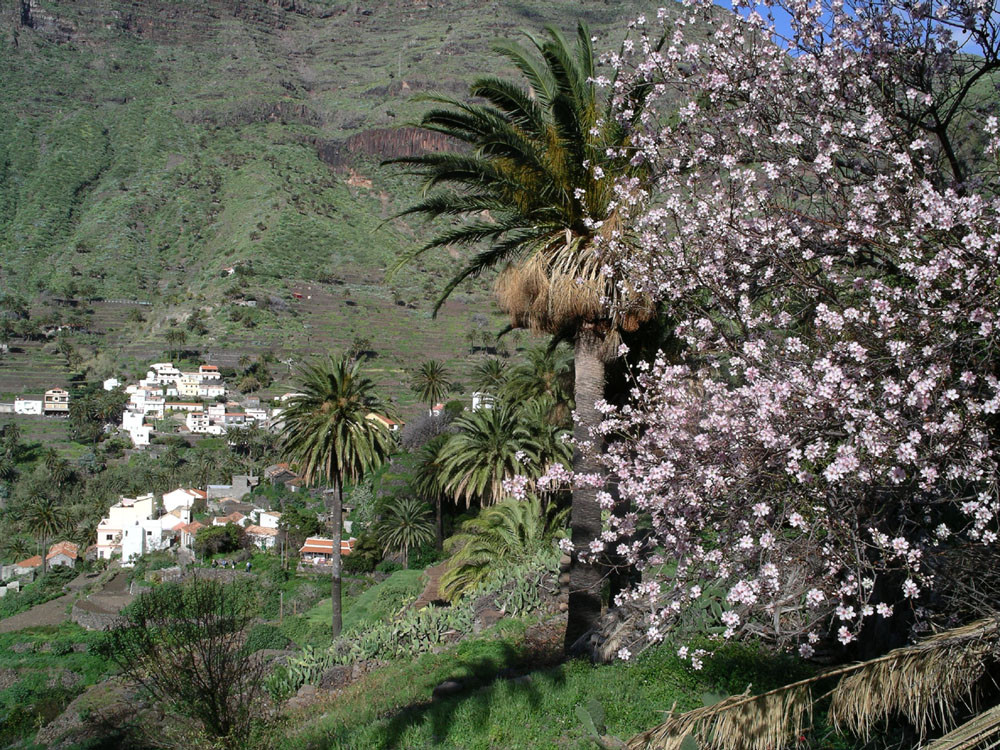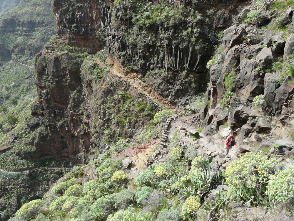 2. Von Imada hinab in den Barranco de Guarimiar. Der Weg zieht sich spektakulär durch die Felswände. Von Guarimiar auf tollem Pflasterweg hinauf nach Targa und von dort teils auf Straße ins nahe Alajero. Von hier auf Pfaden parallel zur Straße zum Drachenbaum unterhalb der Casas Agalán. Zurück zur Straße und auf der kleinen Landstraße nach Imada zurück. (Alternativ kann man auch von Guarimiar über El Azadoe nach Imada zurückkehren.)