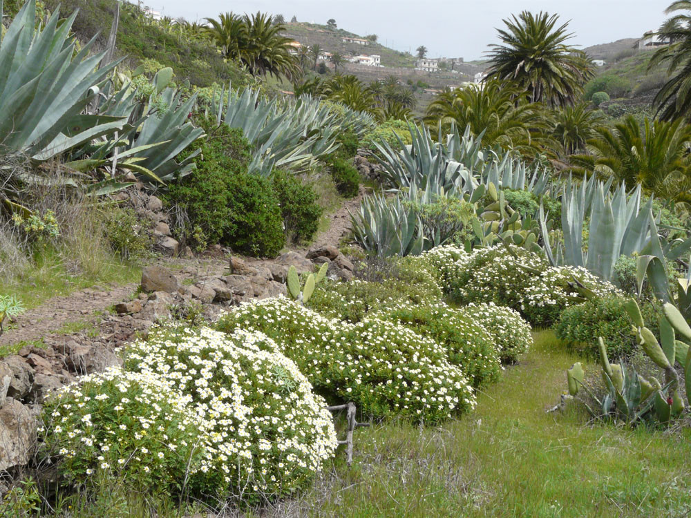 1. Von Agulo mit herrlicher Aussicht auf dem Serpentinenweg zum Stausee Embalse de Palmita. Von dort weiter auf Piste und ein kurzes Pfadstück zur Ermitade San Isidro. Auf Straße zum Besucherzentrum und Botanischen Garten Juego de Bolas. Auf Straße und Weg hinüber nach Las Rosas und von dort auf Wanderweg hinab nach Agulo.