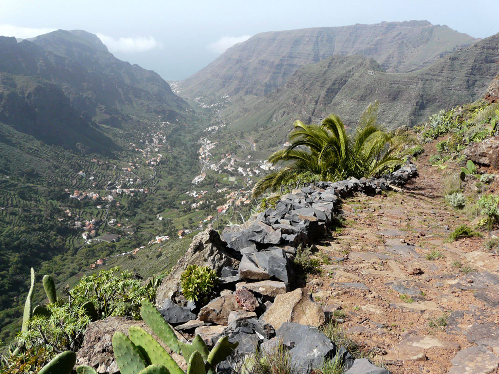 5. Aus dem oberen Valle Gran Rey auf dem alten Pflasterweg und Pfaden hoch nach Las Hayas. Von dort auf aussichtsreichem Weg nach El Cercado. Von dort auf herrlichem Pflasterweg zurück ins obere Valle Gran Rey.