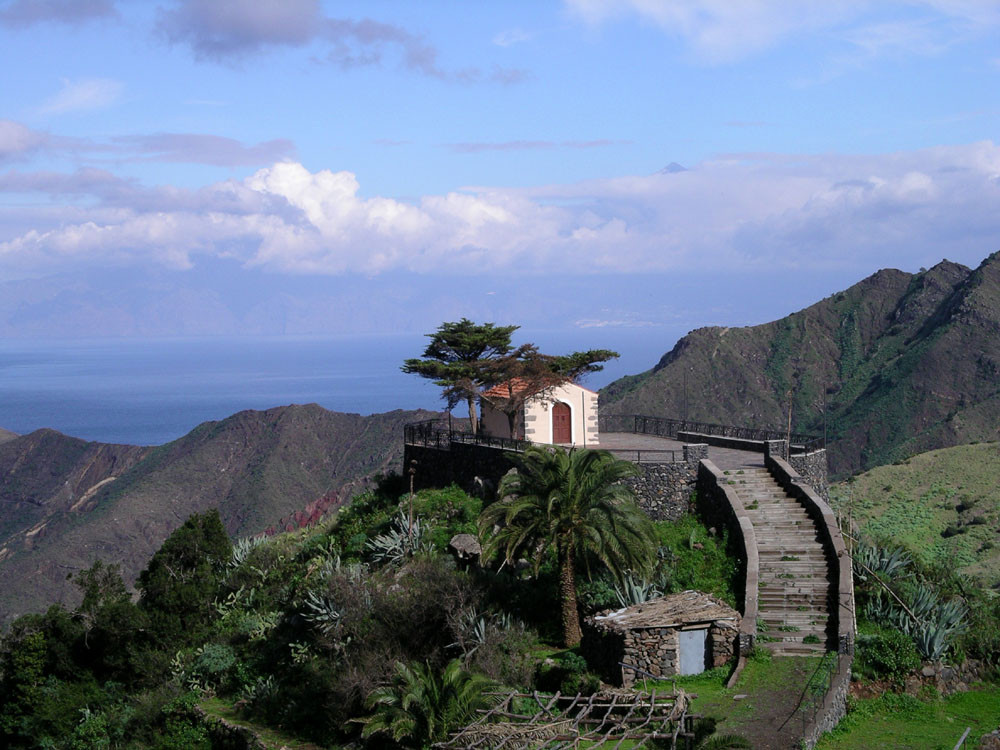 2. Von Hermigua zur Ermita de San Juan und weiter auf schönem Weg steil hinauf nach Los Acevinos. Von dort auf Weg und Piste nach El Cedro. Abstieg über den Stausee Embalse de los Tiles und vorbei am Roque de San Pedro nach Hermigua.