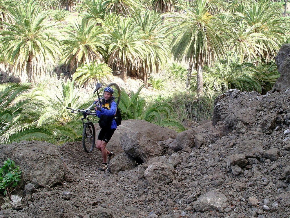 Zum Mountainbiken ist das Valle Gran Rey ungünstig. Die Pfade sind zu steil und steinig. Für gute Pisten muss man immer 800 Höhenmeter die recht stark befahrene Straße nach Arure hinaufstrampeln. Die Abfahrt (Achtung lange Tunnel!) von dort ist allerdings ein Adrenalinschub.