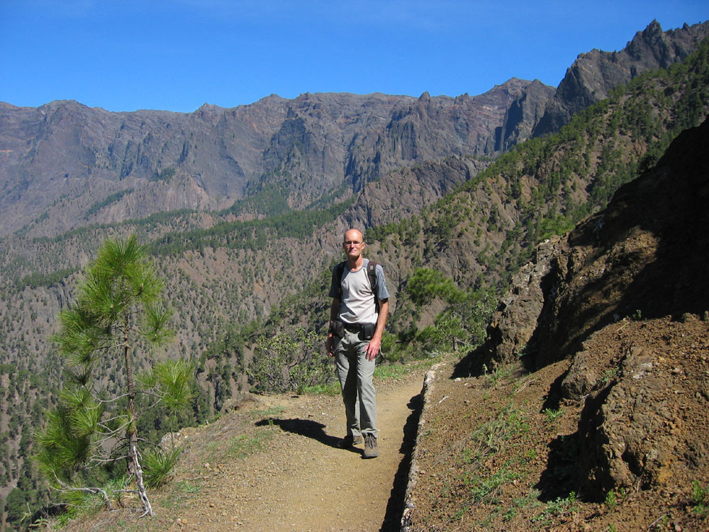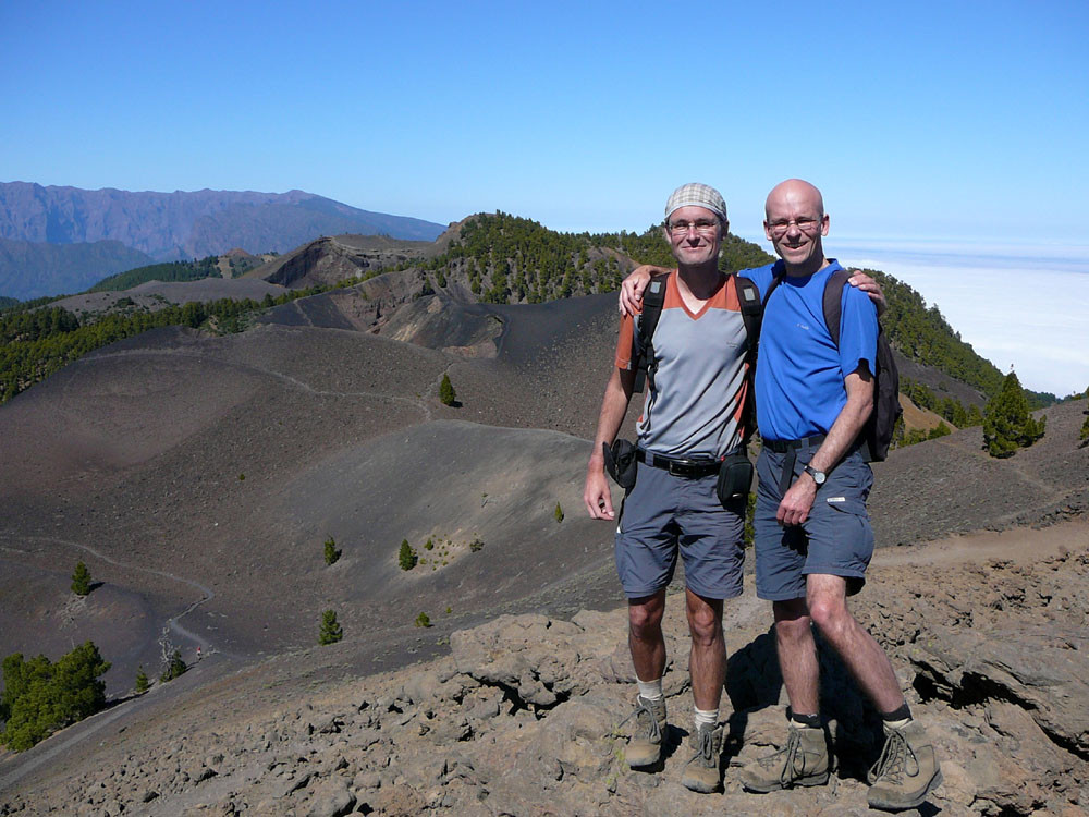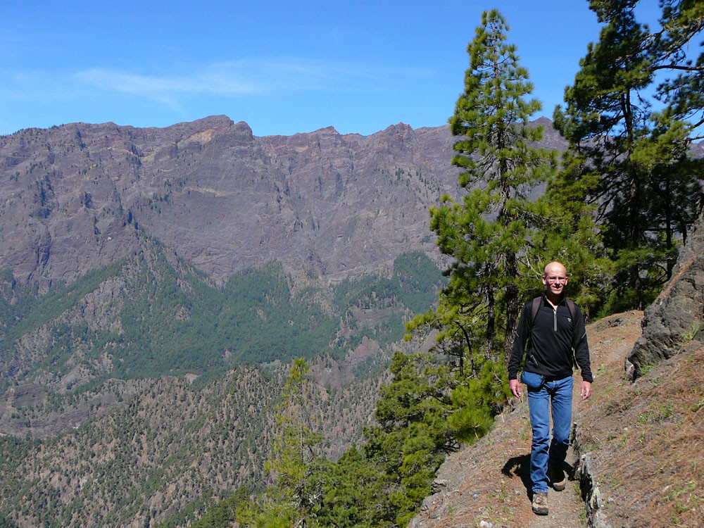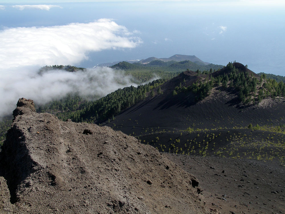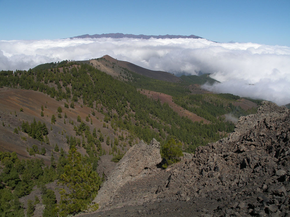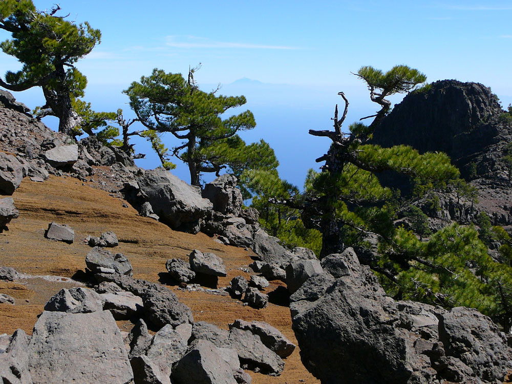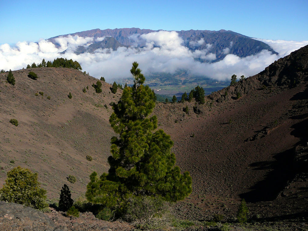 Die Ruta de los Volcanes (Nr. 40 und 45) über den Rücken der Cumbre Vieja ist ein absoluter Klassiker. Im steten Wechsel geht es durch schöne Kiefernwälder und dann entlang erloschener Vulkankrater, die aus einer Mondlandschaft stammen könnten. Einziger Nachteil ist, dass es sich um eine lange Streckenwanderung handelt, deren Startpunkt nicht mit öffentlichen Verkehrsmitteln zu erreichen ist. Daher haben wir die Tour in zwei Wanderungen aufgeteilt und sind mit dem Mietwagen einmal zum Picknickgelände El Pilar gefahren, um von dort den Nordteil zu erkunden. Dabei kann man eine Rundwanderung zunächst über über den Gipfelweg über den Pico Birigoyo und zurück über den GR 131 oder auf der Route am Osthang machen. Bei guter Sicht sollte man zunächst auf die Gipfel steigen, denn man weiß nie, ob die Passatwolken kommen. An einem weiteren Tag starteten wir dann vom Picknickgelände Fuente de los Roques und sind nach Norden bis zum Volcán de la Deseada und zurück gegangen.