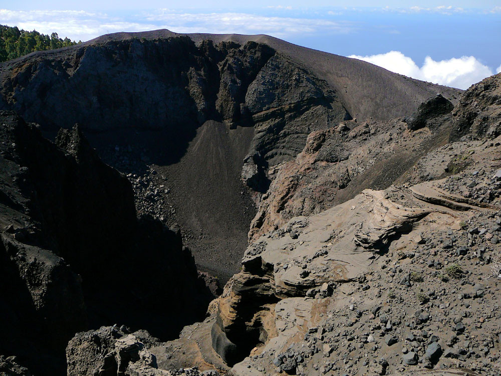Eine aussichtsreiche Wanderung auf den Calderarand zur Schutzhütte an der Punta de los Roques (Nr. 53). Als Startpunkt wählen wir die Ermita de la Virgen del Pino bei El Paso.