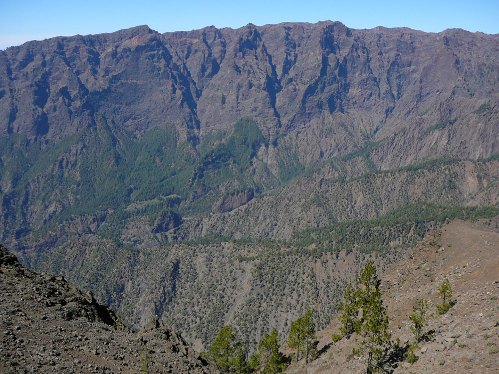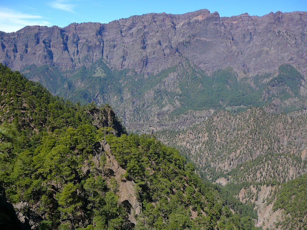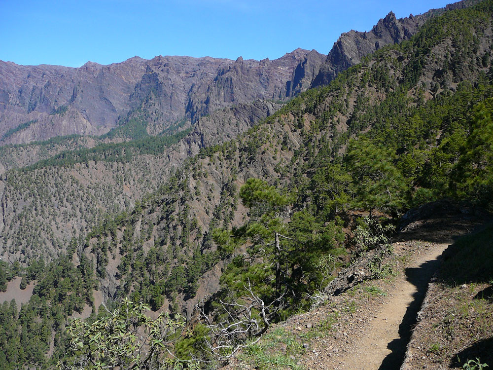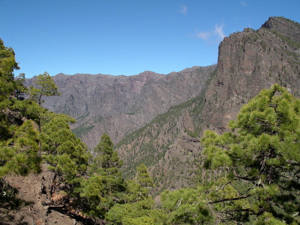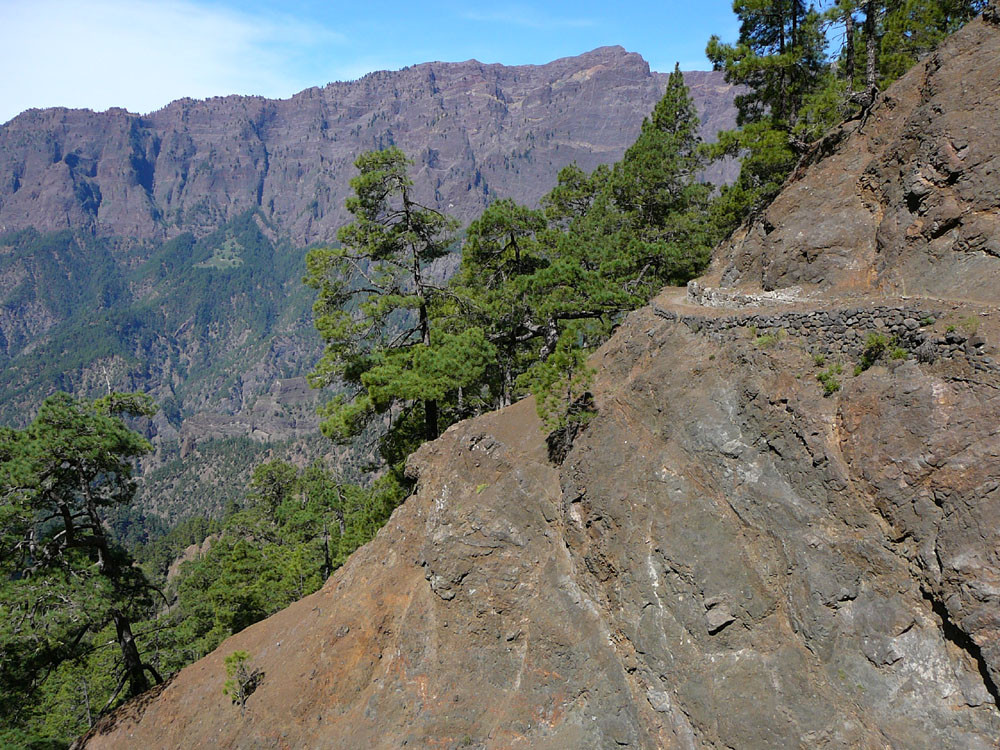 Der kurze Rundweg an der Cumbrecita (Nr. 52) ist ein beliebter Spaziergang für alle, die einen schnellen Blick in die Caldera de Taburiente werfen wollen. Wenn man ein wenig Einsamkeit sucht, folgt man einfach dem schmalen und teilweise ausgesetzten Weg in Richtung Escuchadaro (Nr. 51) in der Kraterwand.