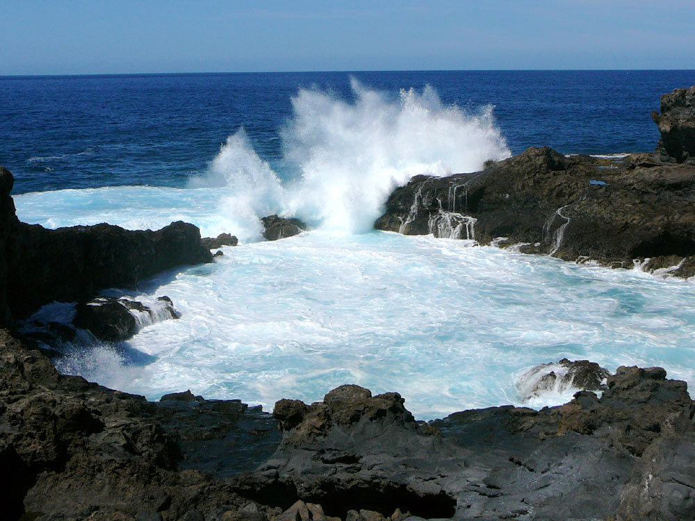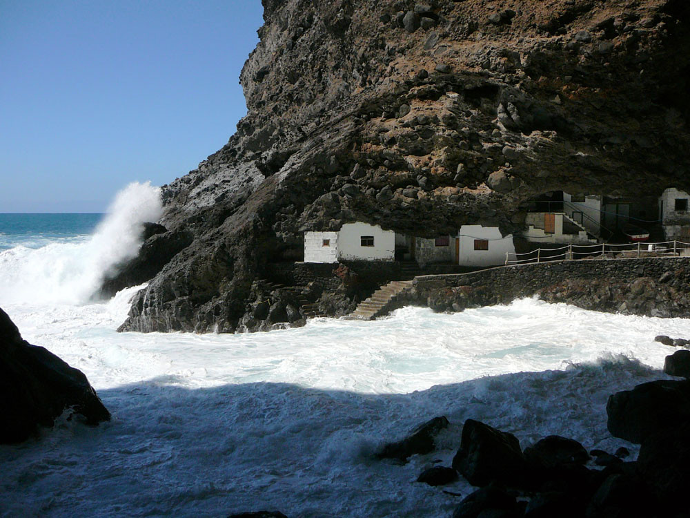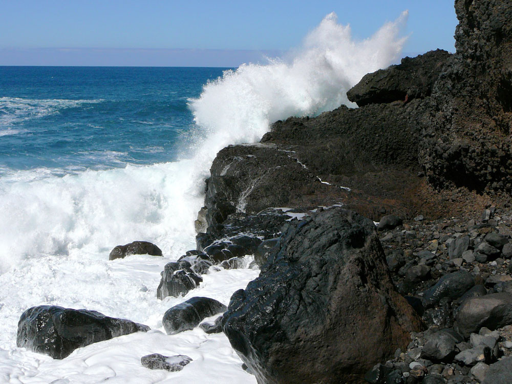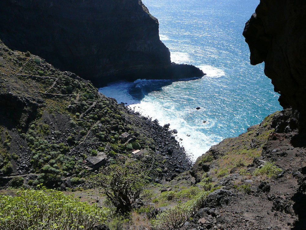 Diese Wanderung (Nr. 33) führt vom Ort Tijarafe durch grüne Landschaft hinab an die wilde Westküste. Baden könnte man unterwegs an der Playa del Jorado - aber auch nur dann, wenn weniger Seegang herrscht als bei unserem Besuch.