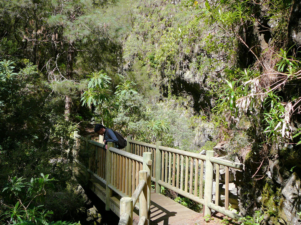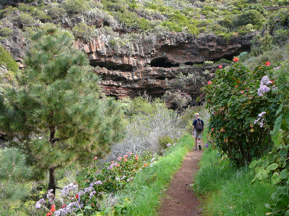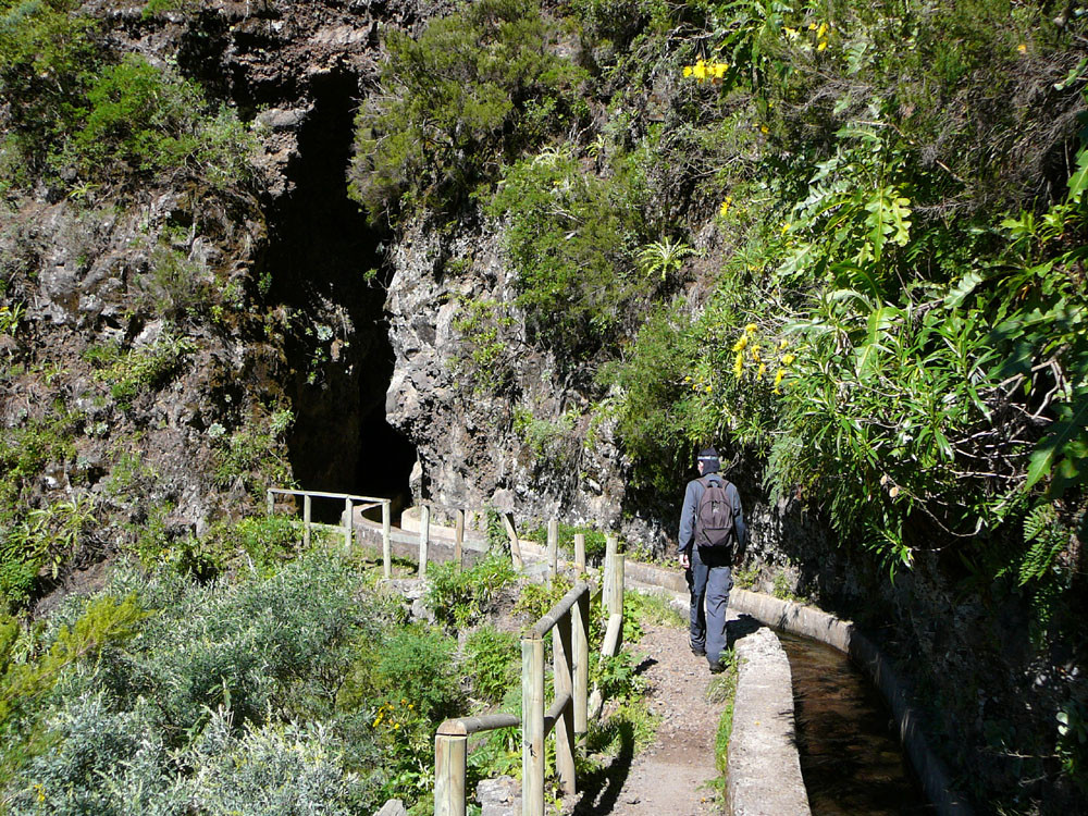 Die Tour in den Barranco de la Madera (Nr. 3) oberhalb von Santa Cruz ist eine außergewöhnliche Wanderung. Von der sehenswerten Kirche Nuestra Senora de las Nieves geht es in eine einsame Schlucht an der Außenseite der Caldera. Der Rückweg führt dann durch einen spektakulären Tunnel hoch in der Barrancowand, durch den ein Wasserkanal fließt.