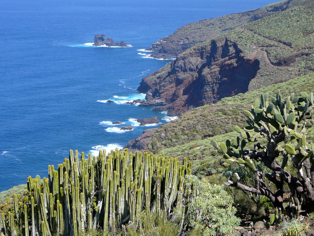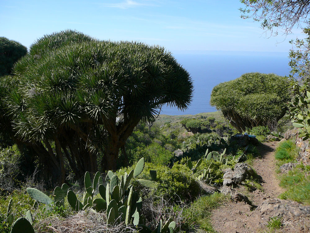 Diese einsame Tour (Nr. 27) führt vom idyllischen Ort Las Tricias vorbei an urigen Drachenbäumen und mystischen Höhlen hinab zur Steilküste im Nordwesten der Insel.