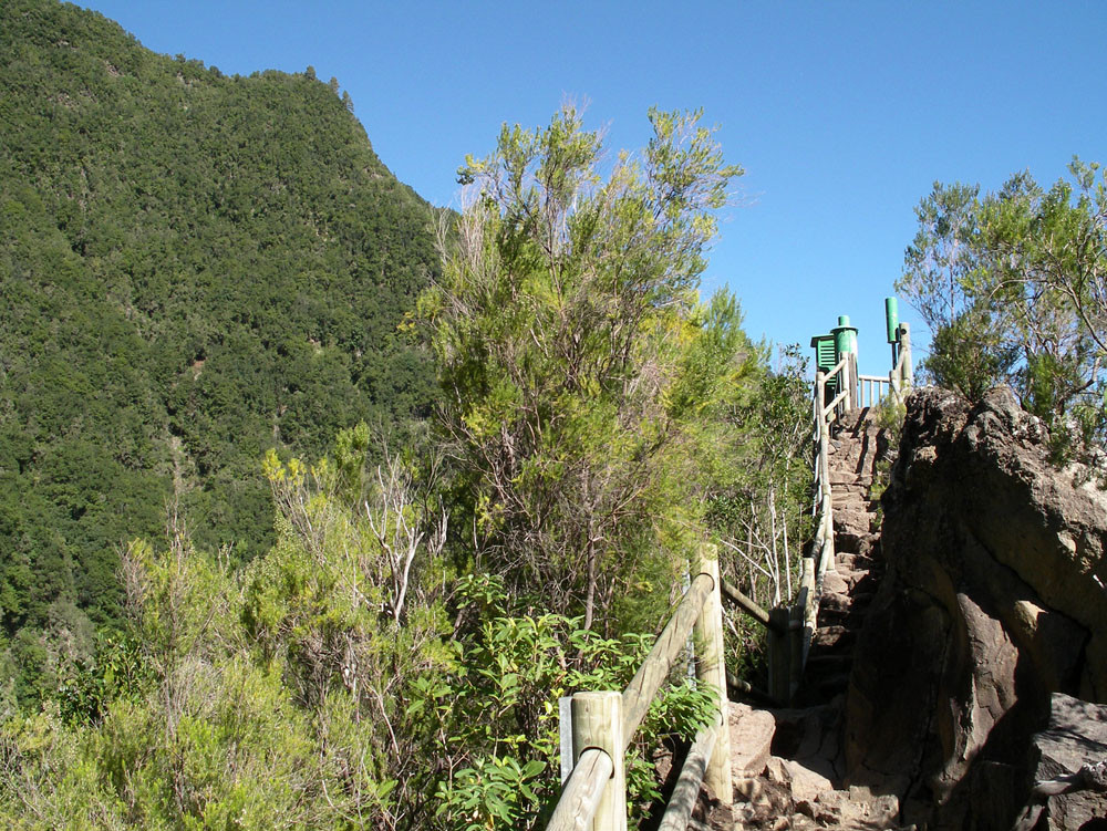 Ein schöner Abstieg durch einen Barranco mit Urwaldvegetation zu Aussichtspunkten über der Nordküste (Nr. 22). Der Rückweg ist dann weniger spannend, da er zunächst recht lange entlang einer allerdings wenig befahrenen Straße verläuft.