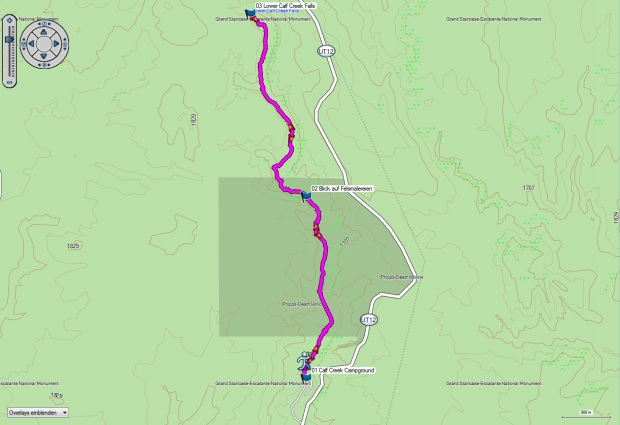 Canyons of the Escalante; Trails Illustrated Map 710; 1:75.000; National Geographic. Die Karte ist zur groben Orientierung hilfreich, für die Wanderung an sich aber nicht erforderlich.
