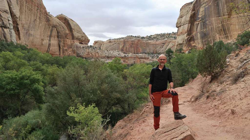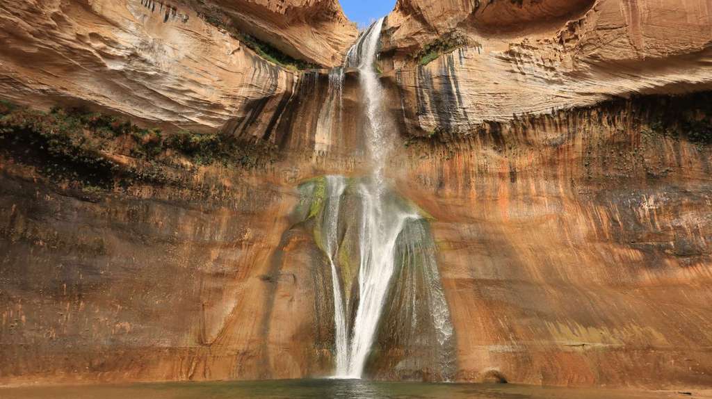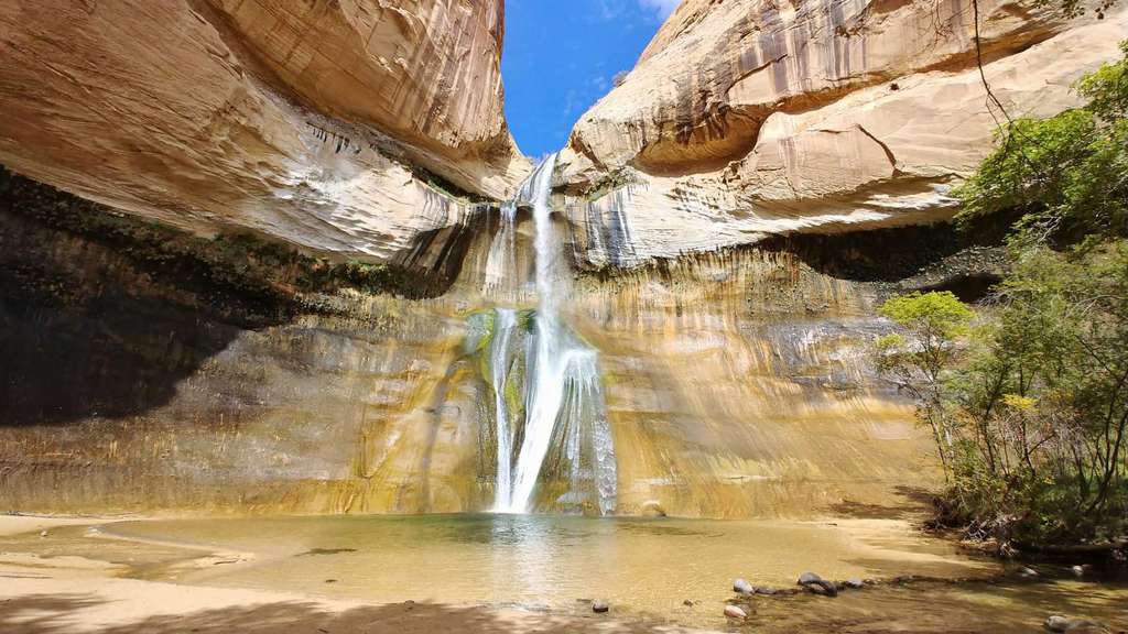Der Naturlehrpfad zu den Lower Calf Creek Falls ist der einzige angelegte und unterhaltene Wanderweg im Grand Staircase-Escalante National Monument. Er erfreut sich zurecht großer Beliebtheit, sodass man den Trail mit Sicherheit nicht ganz für sich alleine haben wird. Das Ziel der Wanderung ist ein ganzjährig beeindruckender Wasserfall, wie man ihn in dieser trockenen Umgebung nicht erwarten würde. Unterwegs trifft man auf Biberteiche, hat Blicke zu fernen Felsmalereien und wandert durch eine vielfältige Vegetation.