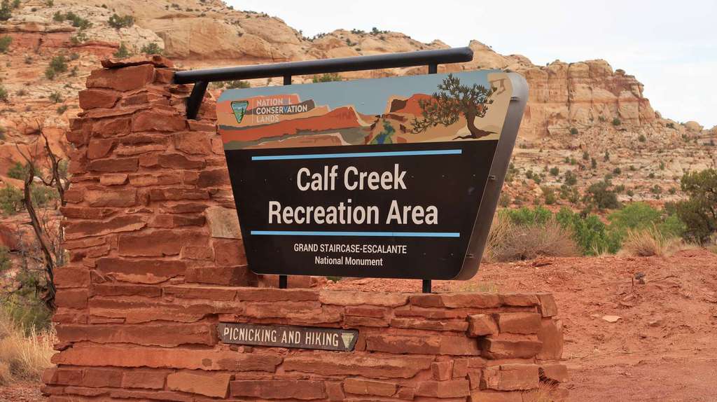 Der einfache Campground der Calf Creek Recreation Area (www.blm.gov/visit/calf-creek-recreation-area-campground) verfügt über 13, zumeist am Bachufer verteilte Stellplätze, die nicht vorab reserviert werden können und 15 $ pro Nacht kosten.