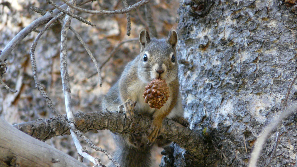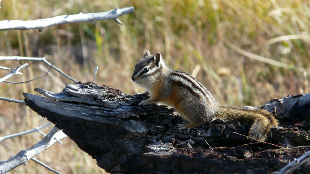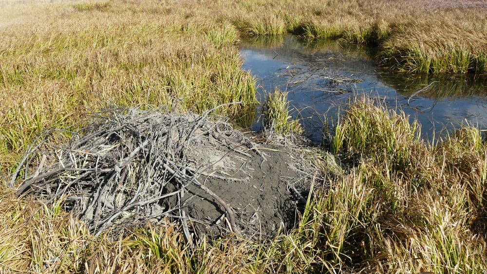 Zunächst folgen wir dem Seeufer, verlassen es aber nach der geschlossenen Trail Creek Rangerstation. Wir überqueren einen kleinen Höhenrücken, dann geht es zwischen Bergen und See fast eben dahin. Einen kleinen Bach müssen wir auf einem noch morgendlich vereisten Baumstamm überqueren - eine rutschige Angelegenheit. Wenig später erreichen wir eine Bucht am South Arm des Yellowstone Lake. In den Ästen der kahlen Bäume am Ufer entdecken wir zwei Weißkopfseeadler. Weiter auf dem Trail Creek Trail geht es auf eine Hügelkette zu, die wir an ihrem tiefsten Punkt überqueren. In der Nähe des Outlet Lake machen wir eine späte Mittagspause. Vom auf der Karte eingezeichneten Campingplatz finden wir keine Spur. Wenig später haben Biber wieder das kleine Tal geflutet und wir können einen Biberbau aus der Nähe betrachten. Nun gehen wir das Tal zum Heart Lake hinab, an dessen Ufer wir zum Zeltplatz 8J6 kommen.