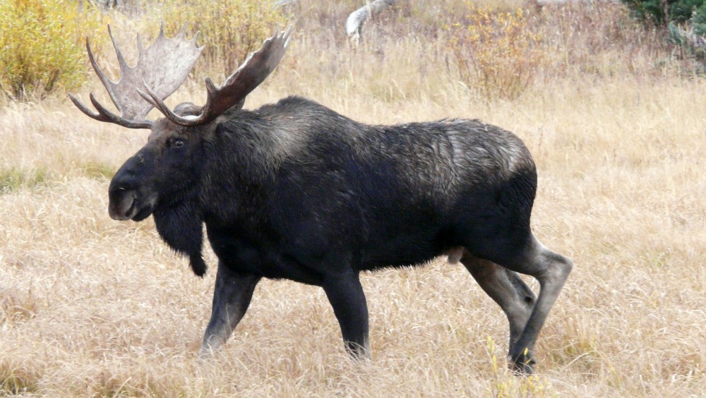 Der Morgen ist kalt, so dass wir ohne Frühstück aufbrechen. Kaum sind wir wieder auf dem Hauptweg, kommen uns drei mächtige Bisons entgegen. Wir machen respektvoll Platz, während sie unbeeindruckt vorbeiziehen. Als wir uns umdrehen, kommt vom fernen Flussufer ein Elch direkt auf uns zu. Etwa zwanzig Meter entfernt stutzt er kurz, doch wir scheinen für den kapitalen Bullen nicht besorgniserregend. Dicht schreitet er an uns vorbei und setzt unbeirrt seinen Weg fort.