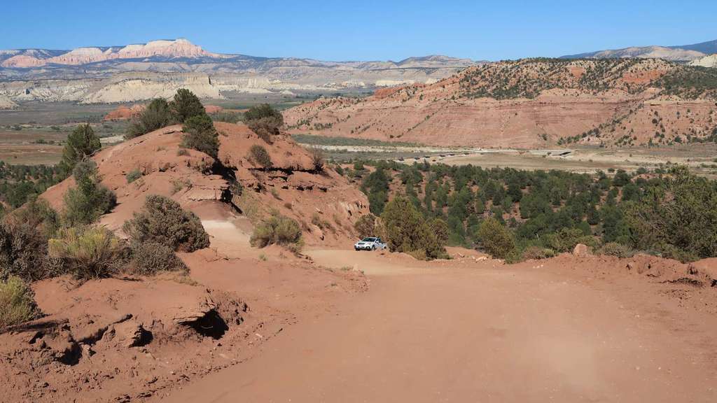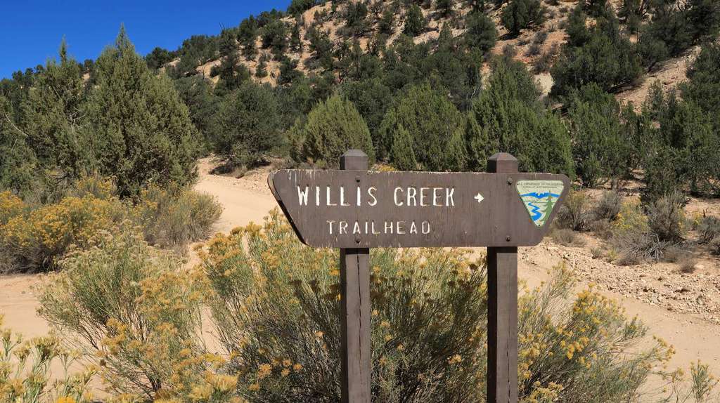 Im Zentrum der Ortschaft Cannonville biegt man von der Utah State Route 12 nach Süden auf die Main Street (Ausschilderung zum Kodachrome Basin State Park). Nach wenigen Hundert Metern befindet sich auf der rechten Straßenseite eines der Visitor Center des Grand Staircase Escalante Monument, wo man ggf. Informationen zum Zustand der Zufahrtsstraße zum Willis Creek erhält. 4,5 km (2,8 mi) südlich von Cannonville zweigt von der Asphaltstraße nach rechts die ausgeschilderte Skutumpah Road ab, auf die wir abbiegen. Sie durchquert eine in der Regel weitgehend trockene Furt und steigt dann als unbefestigte Straße einen Höhenrücken hinauf. Bei trockenem Wetter ist sie mit etwas Vorsicht auch für normale Pkw recht gut befahrbar. Bei Nässe wird sie jedoch sehr schmierig und ist dann sogar für Allradfahrzeuge gefährlich. Nach 10,0 km (6,2 mi) ab dem Abzweig befindet sich auf der rechten Seite (kurz vor der Bachquerung) der große Parkplatz des Willis Creek Trailhead.