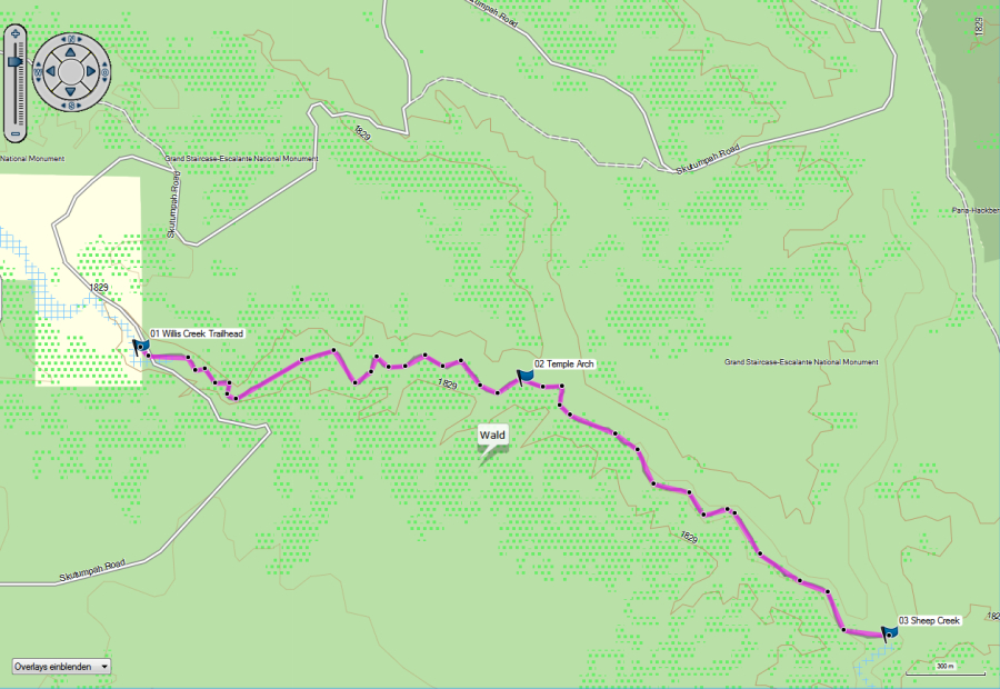 Grand Staircase – Paunsaugunt Plateau; Trails Illustrated Map 714; 1:75.000; National Geographic. Die Karte ist zur groben Orientierung hilfreich, für die Wanderung an sich aber nicht erforderlich.