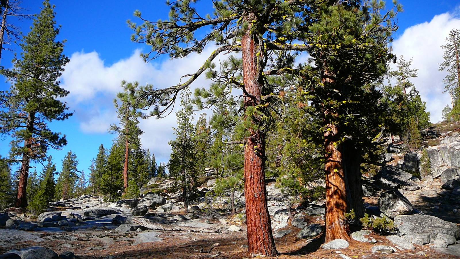 Am nächsten Tag queren wir in leichtem Auf- und Ab stets auf über 2000 m bleibend durch lichte Nadelwälder das Hochland. An einer Wegegabelung halten wir uns links und überqueren später eine Forststraße und wenig später die Tioga Road. Der kleine Lukens Lake bietet sich später für eine Pause an. Oberhalb des Zeltplatzes White Wolf nehmen wir Kurs auf das Tal des tief eingeschnittenen Tuolumne River. Am späten Nachmittag finden wir hoch über dem Grand Canyon of the Tuolumne River ein ebenes sandiges Plätzchen mit herrlicher Aussicht auf den Hetch Hetchy Stausee als Lagerplatz.